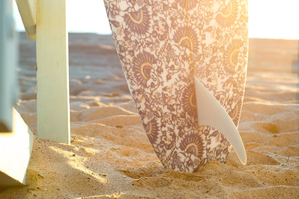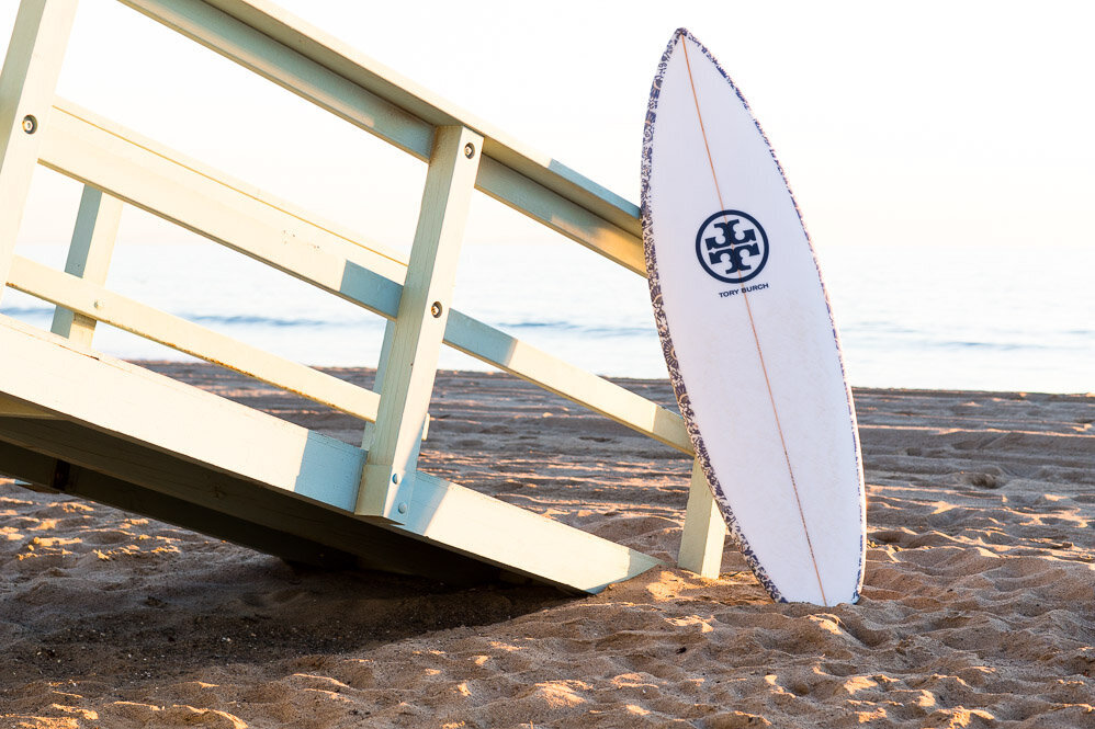 Collaborated with L.A.’s Kelly Connolly, the founder of Everyday Surfboards, who’s made a career out of handcrafting boards, to create a custom Tory Burch surfboard with the Tory
